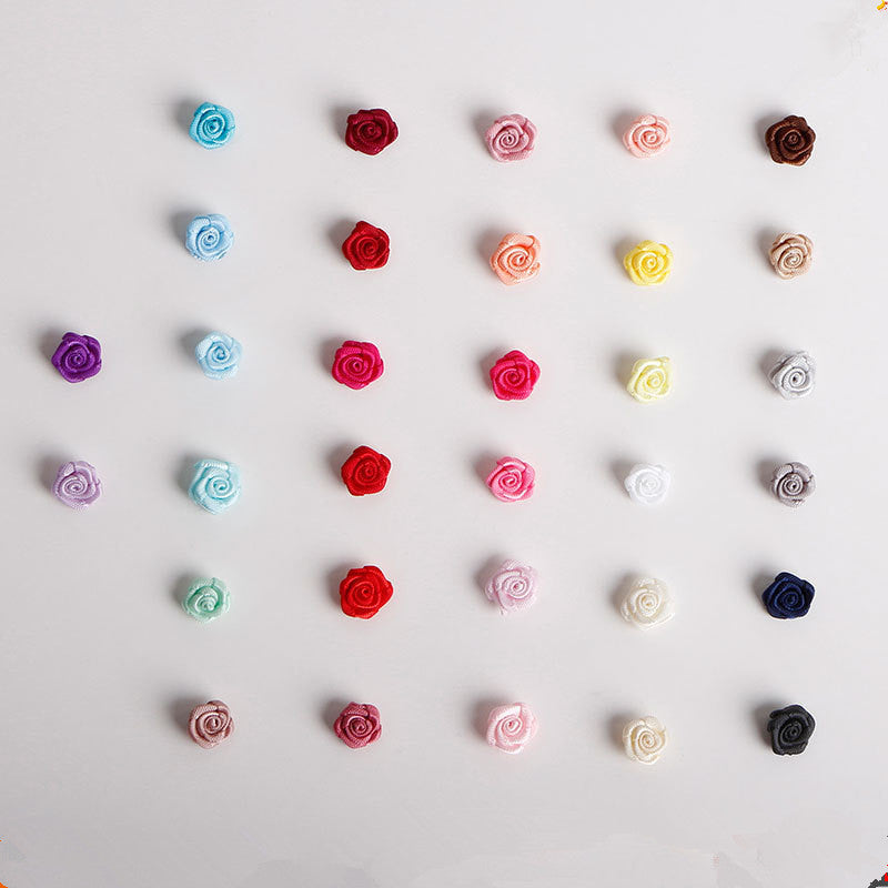 This mini ribbon flower, made from 100% polyester satin, is perfect for garment accessories and DIY projects. It features a solid color pattern, woven technique, and eco-friendly properties, offering versatility in usage for clothing, gift box decorations, and more.